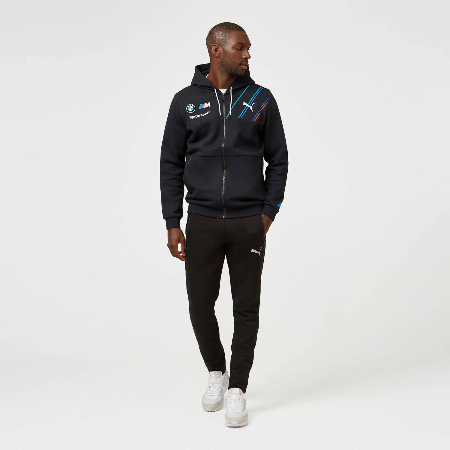Designed by PUMA in collaboration with BMW the new replica collection showcases the legacy of BMW. Exhibiting the PUMA logo and BMW stripe design on the chest and full-length zip and adjustable hoody be sure to look the part wherever you go.