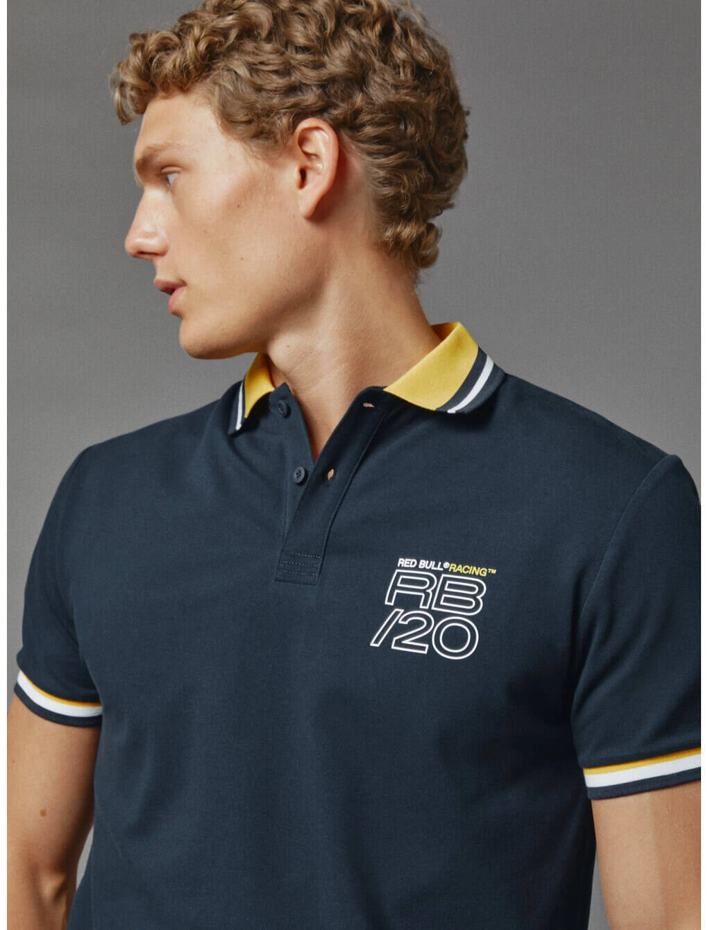 The Red Bull Racing x Pepe Jeans polo shirt is an elegant blend of sporty style and comfort. Made from high-quality piqué cotton with a touch of elastane, it ensures softness, breathability, and flexibility, guaranteeing comfort throughout the day. The graphic on the left chest commemorates the team's twentieth season in Formula 1.