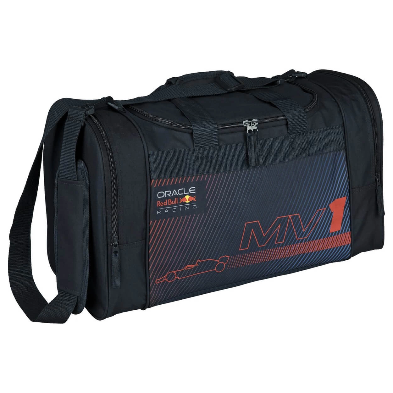 The Red Bull Racing Max Verstappen sports bag combines functionality with dynamic design, making it perfect for workouts or travel. The spacious main compartment, equipped with a two-way zipper, offers plenty of room for sports clothing and essential accessories. Side zip pockets allow for convenient storage of smaller items, providing easy access at any time. Two sturdy handles make it easy to carry, while the reinforced, padded bottom protects the contents and enhances the bag's durability. For additional comfort, the bag is equipped with an adjustable and padded shoulder strap, which can also be detached, allowing you to carry the bag in your preferred way. Made from durable material, the bag is adorned with the Red Bull Racing logo and Max Verstappen's name, emphasizing a passion for motorsport.