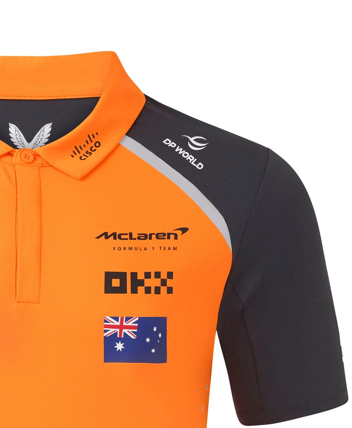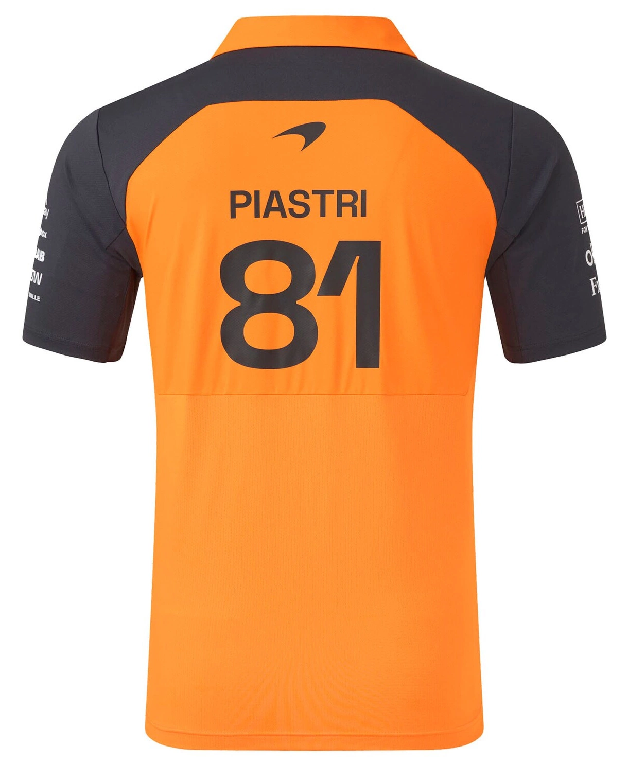 This official men’s Oscar Piastri McLaren Formula 1 Team polo shirt is a show of support for the Australian racing driver. Made from breathable, high-quality fabric, it provides all-day comfort regardless of conditions. Attention to detail emphasizes its exceptional quality.