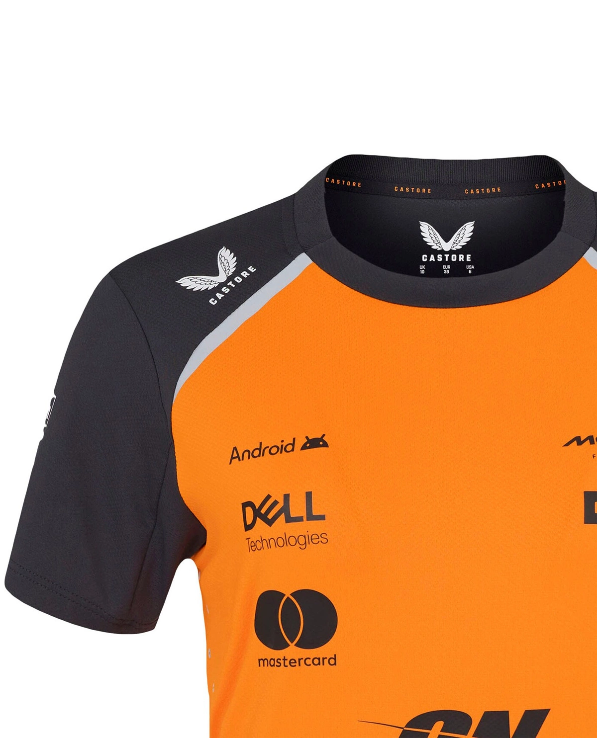 The official women's McLaren Formula 1 Team t-shirt for the 2025 season combines modern design with comfort. Made from high-quality materials, it ensures breathability and comfort throughout the day. Its careful craftsmanship and attention to detail highlight its excellent quality.