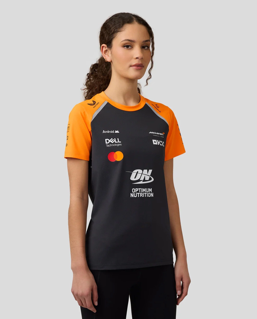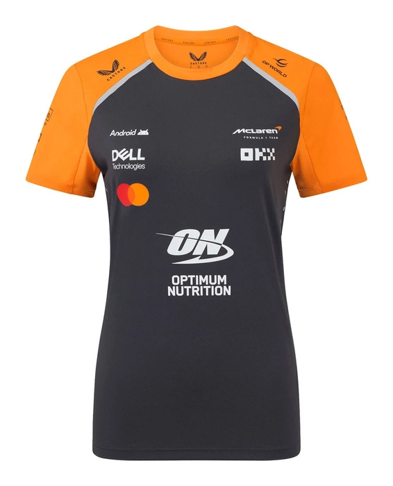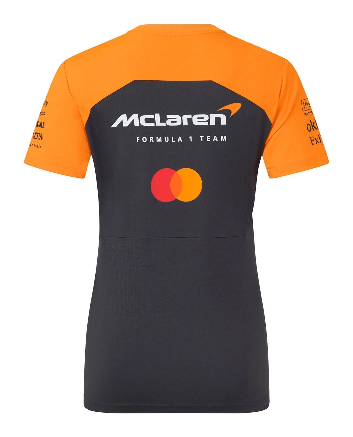 The official women's McLaren Formula 1 Team t-shirt for the 2025 season combines modern design with comfort. Made from high-quality materials, it ensures breathability and comfort throughout the day. Its careful craftsmanship and attention to detail highlight its excellent quality.