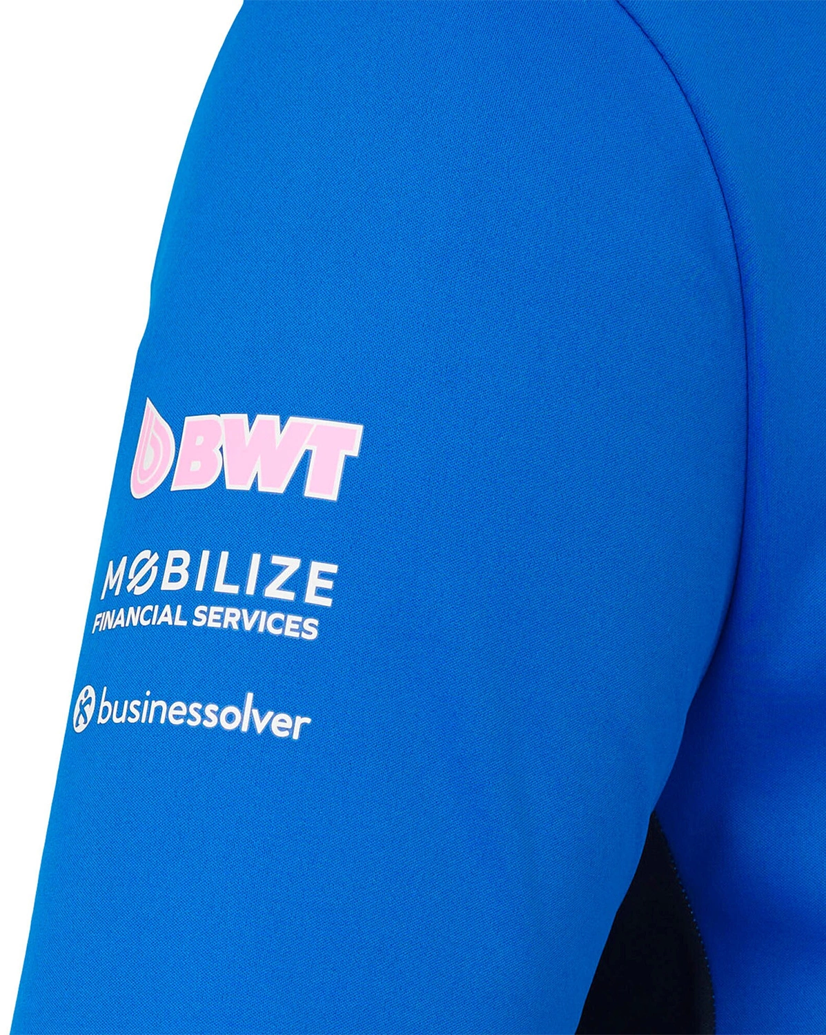 The official BWT Alpine F1 Team softshell jacket is the perfect choice for any fan of the team. Lightweight, breathable, and comfortable – it’s ideal for both the racetrack and everyday wear. With ergonomic side panels and printed sponsor logos, it stands out with its sporty character and modern design.