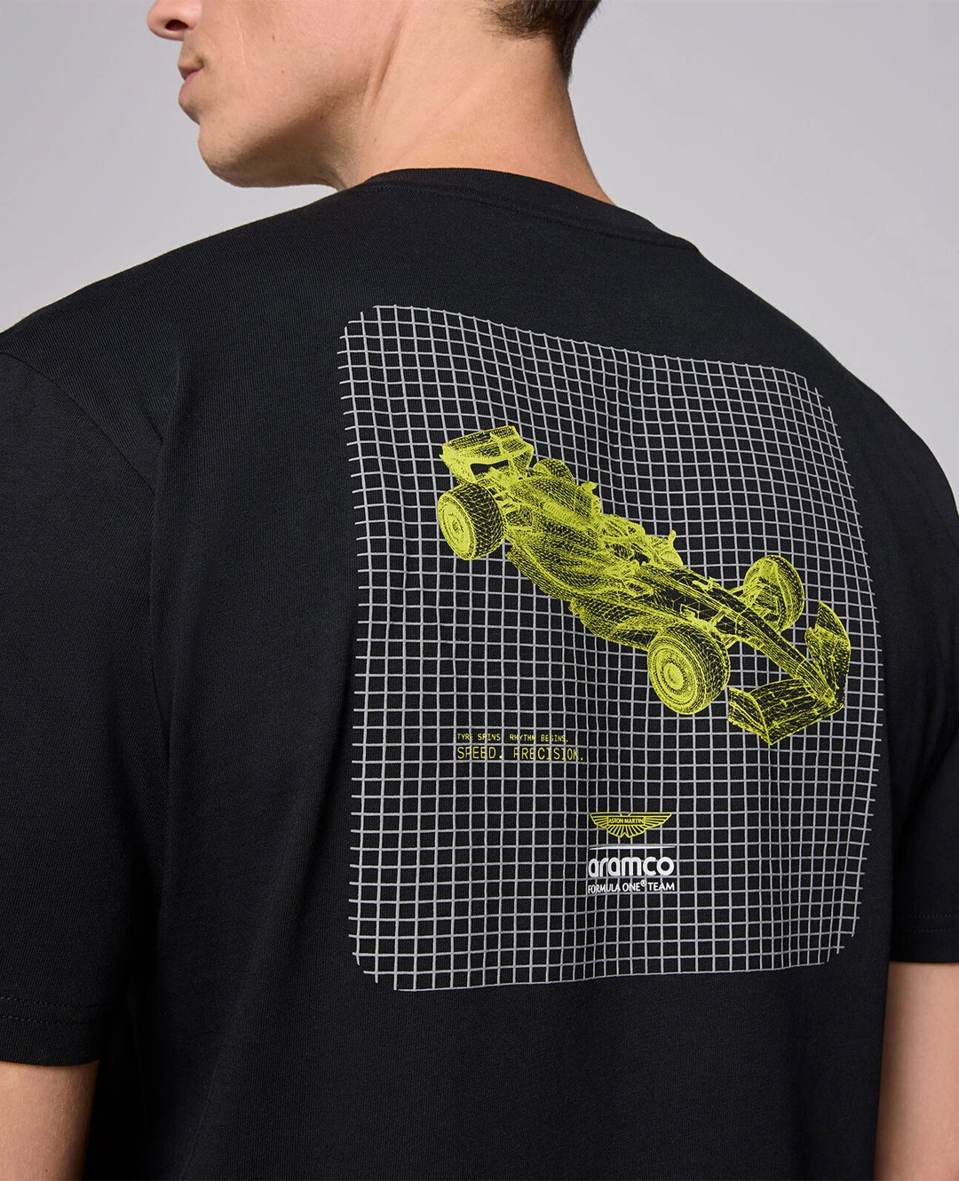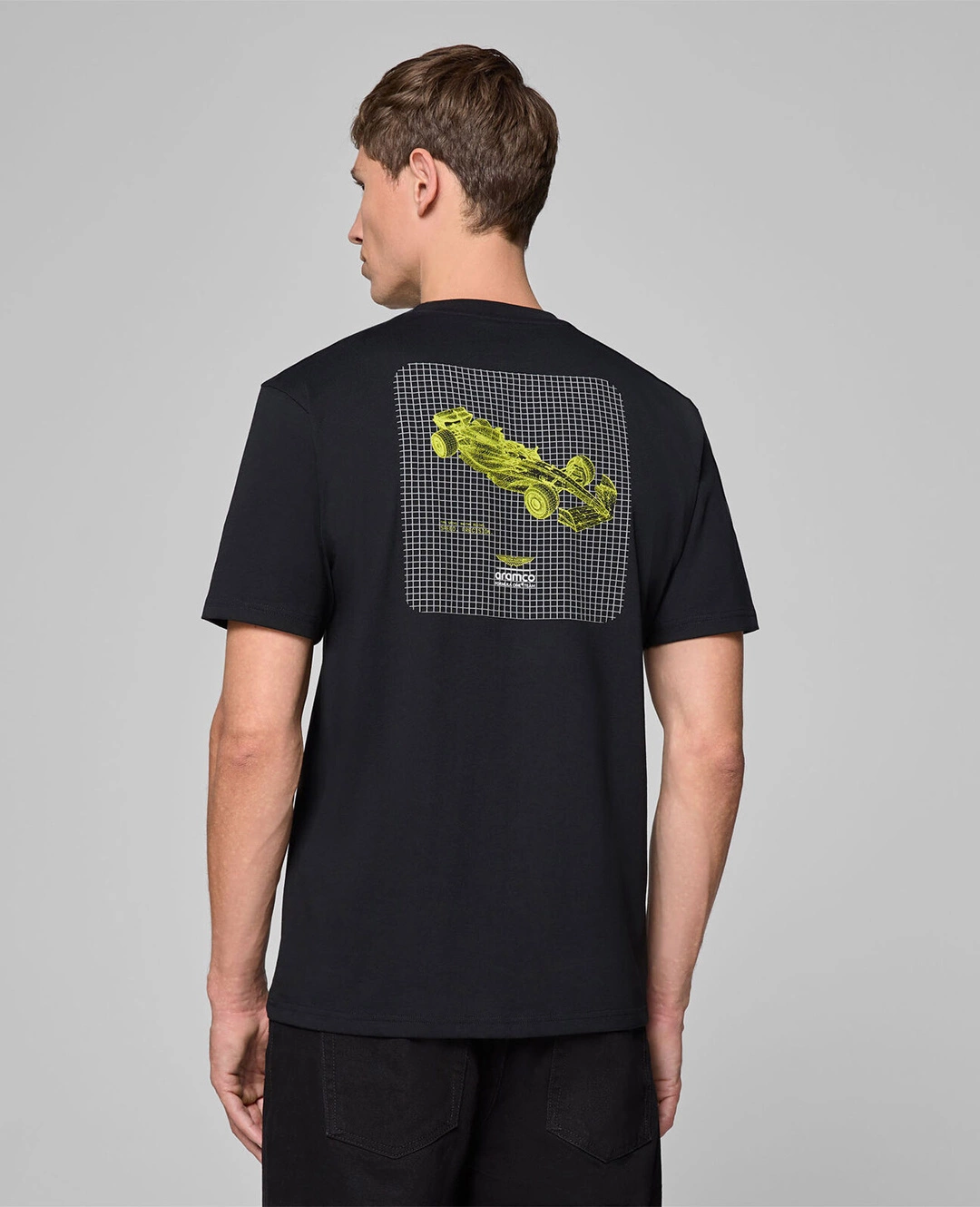 The official Aston Martin Aramco Formula One Team Wireframe Graphic T-shirt is a perfect choice for team fans. It features a futuristic print inspired by technical sketches of an F1 car, while its high-quality material ensures all-day comfort.