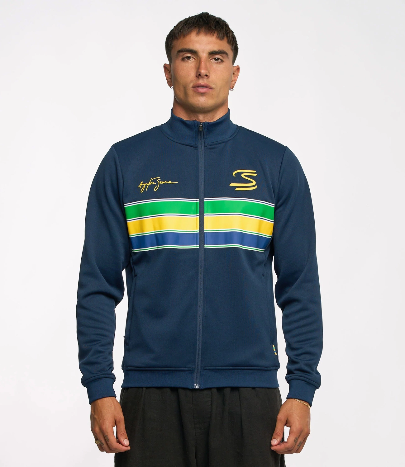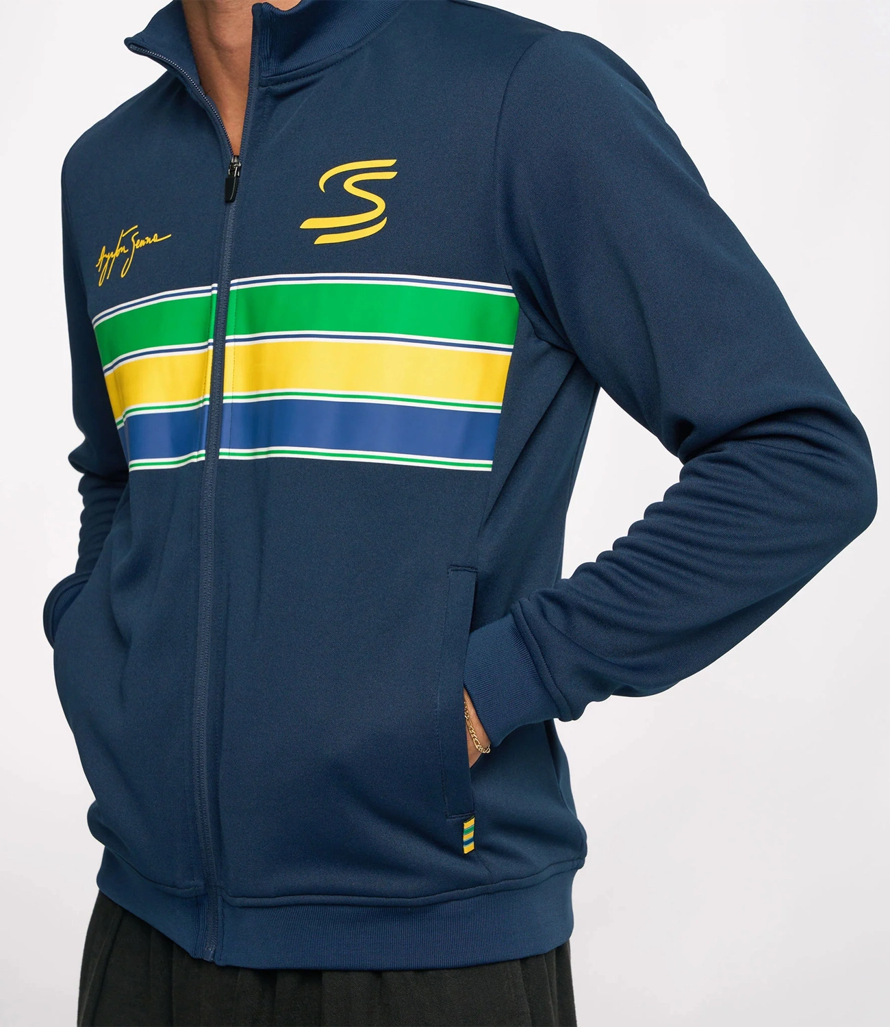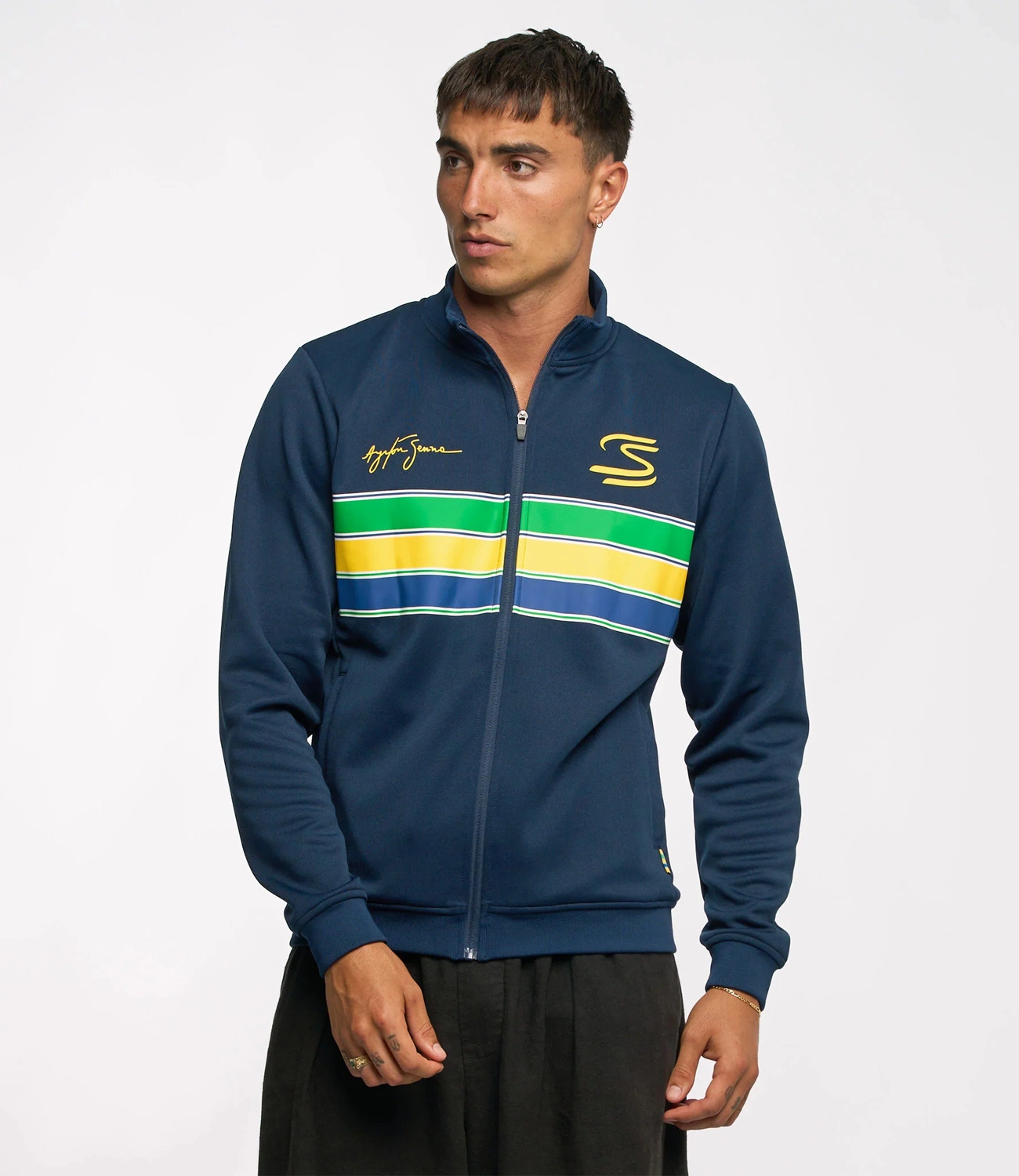The Ayrton Senna Retro Stripe zip-up sweatshirt is made from high-quality, soft material that ensures comfort and durability. Its design, inspired by the colors of the legendary driver's helmet, gives the sweatshirt a unique, timeless character.