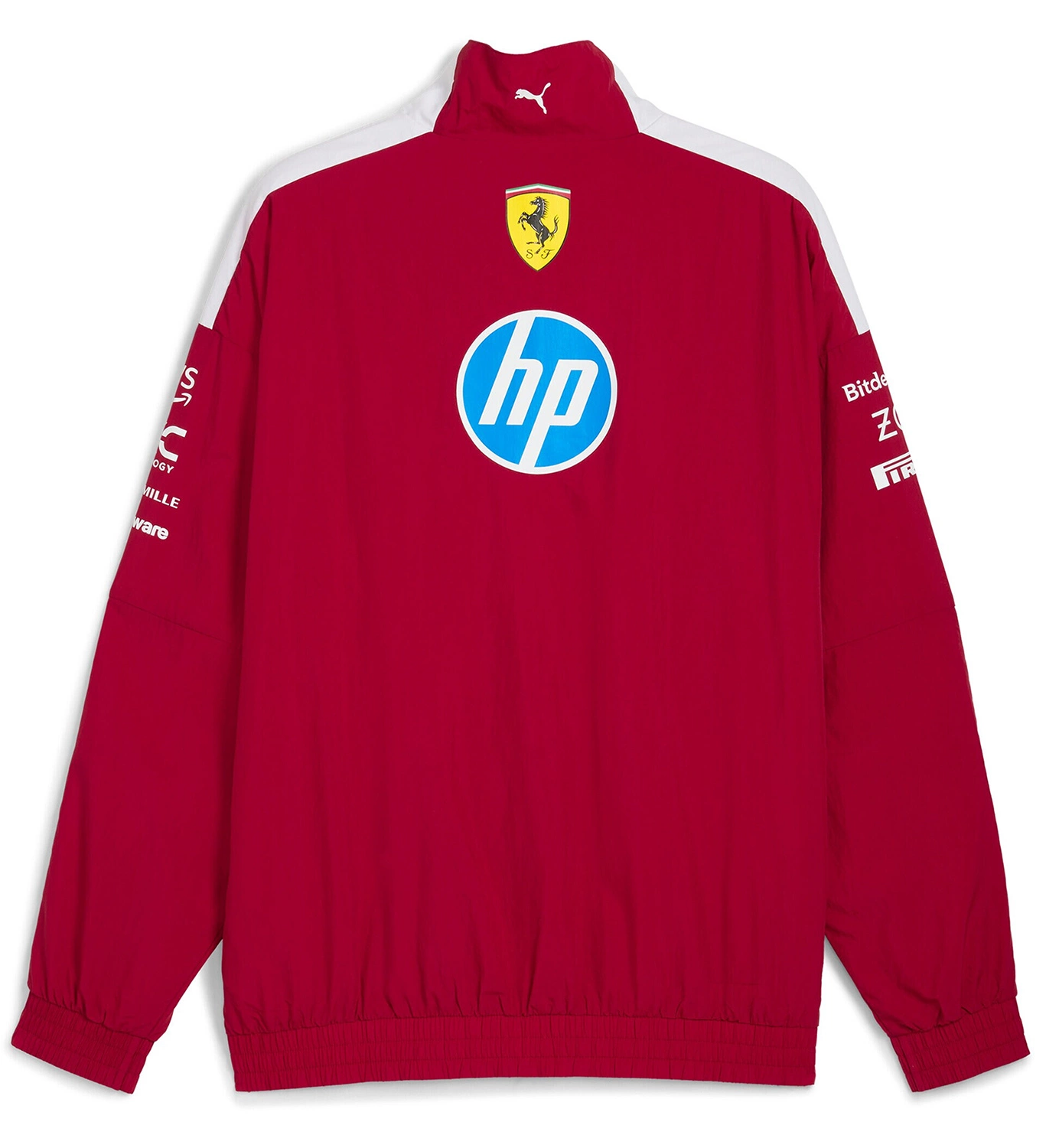 The Scuderia Ferrari F1 2025 Driver's T7 Jacket is an oversized model that combines motorsport style with everyday comfort. The contrasting PUMA T7 stripes on the sleeves emphasize the dynamic character of the design, while the Scuderia Ferrari and sponsor logos highlight its Formula 1 identity. Made from soft, comfortable materials — perfect for daily wear.