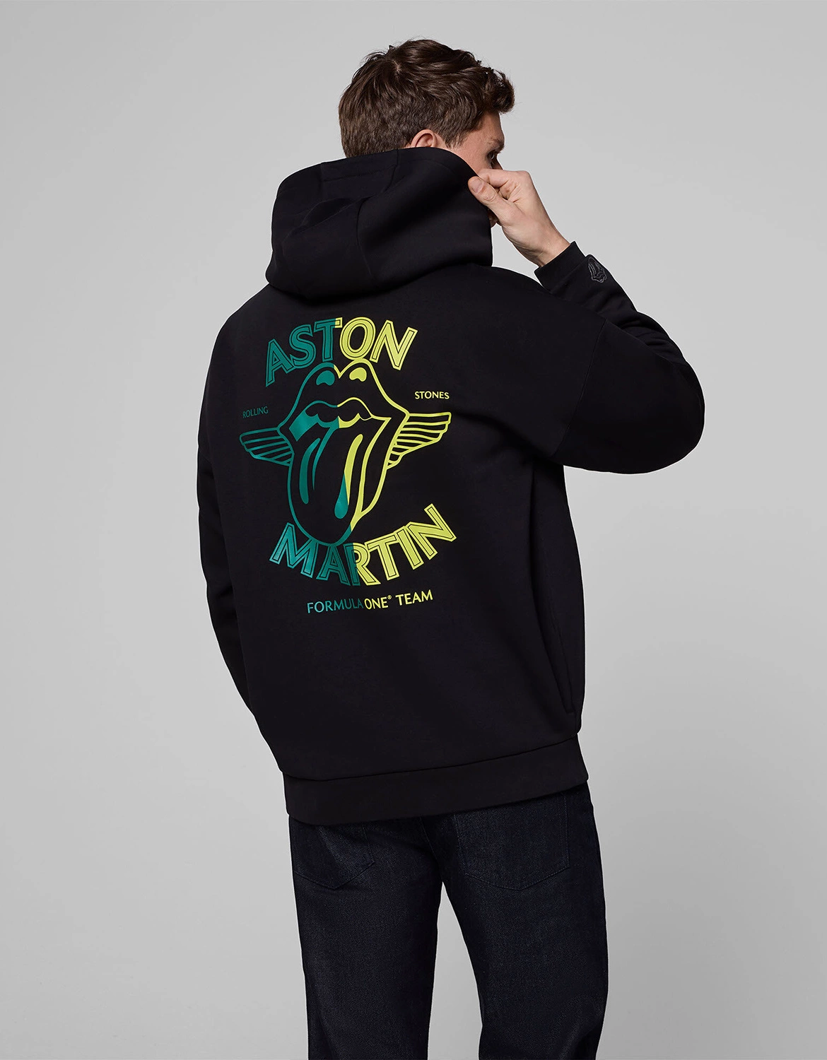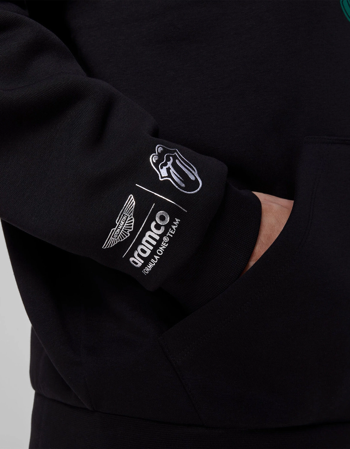The Aston Martin Aramco Formula One Team x The Rolling Stones hoodie is a unique fusion of racing heritage and rock legend. This limited-edition piece stands out with the band’s iconic logo and design elements inspired by Aston Martin’s racing spirit.