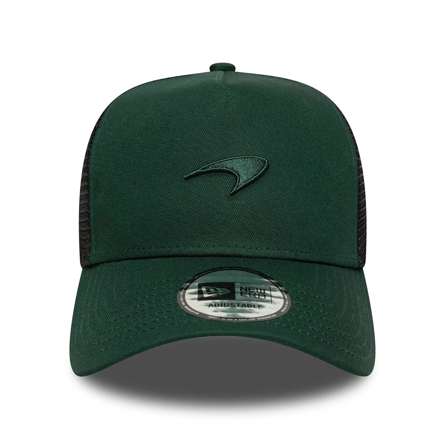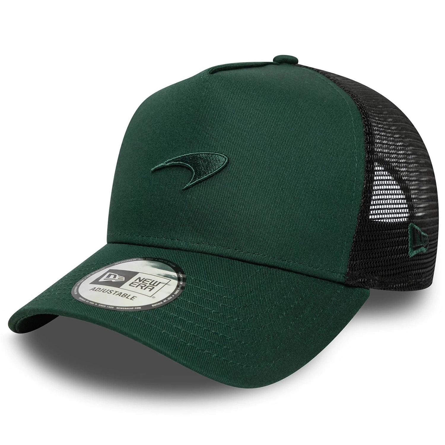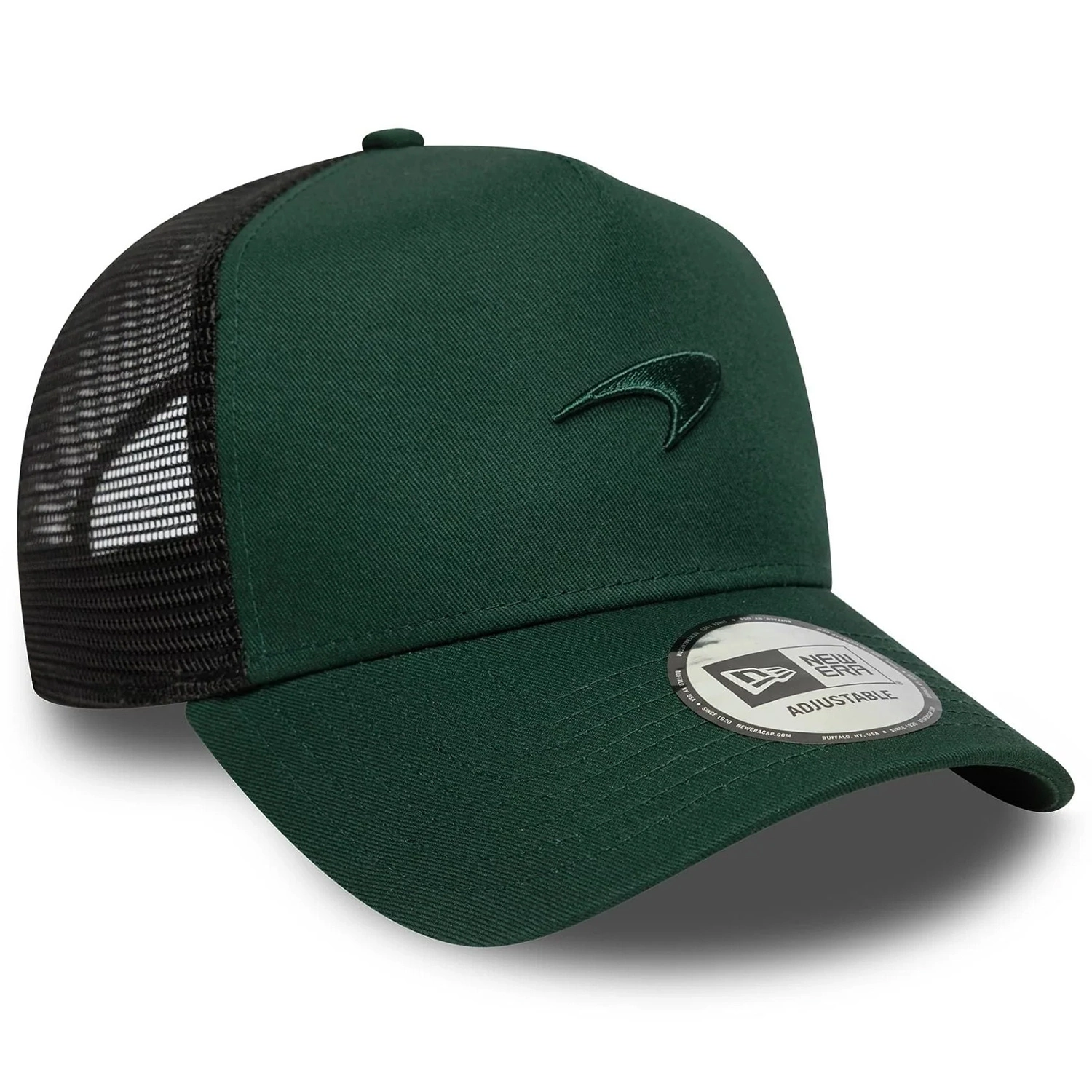 The official McLaren F1 Team trucker cap, designed by New Era in a bold green color. This 9FORTY model features a structured front panel, breathable mesh at the back and sides, and a curved brim for everyday comfort. An adjustable closure ensures a custom fit—perfect for Formula 1 fans and McLaren supporters.