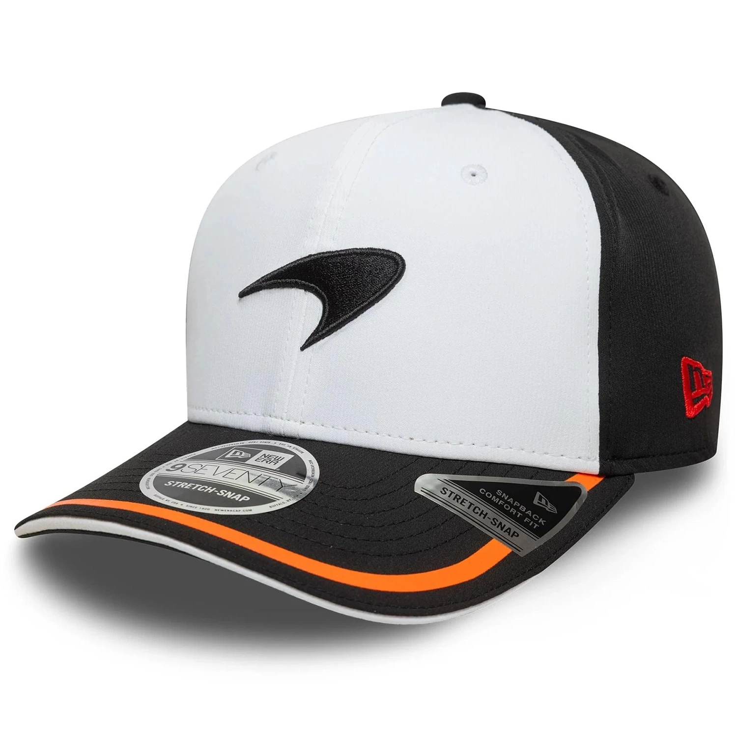 The official McLaren F1 Team cap designed by New Era in a retro-inspired look. This 9SEVENTY model features a structured crown, curved visor with contrast trim, and an adjustable closure for a comfortable and secure fit. A stylish accessory for any Formula 1 fan and McLaren supporter.
