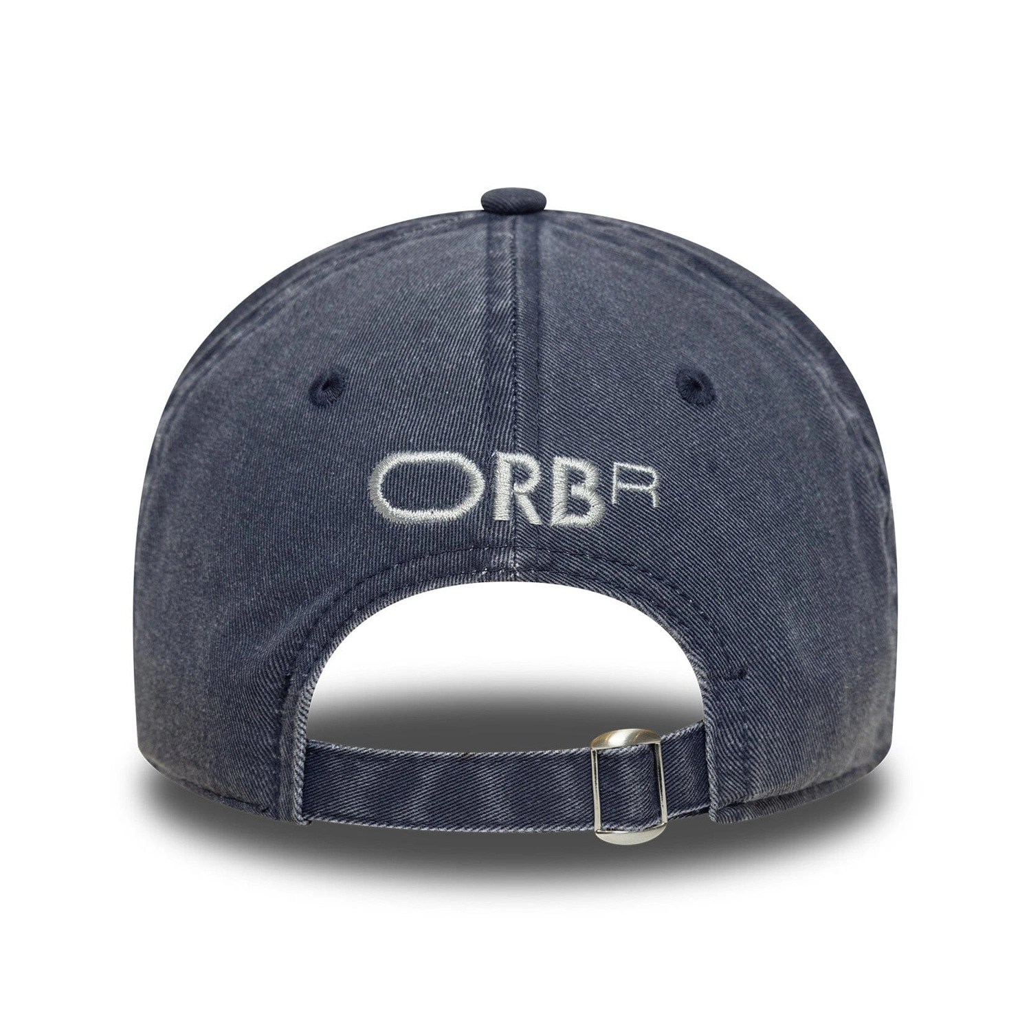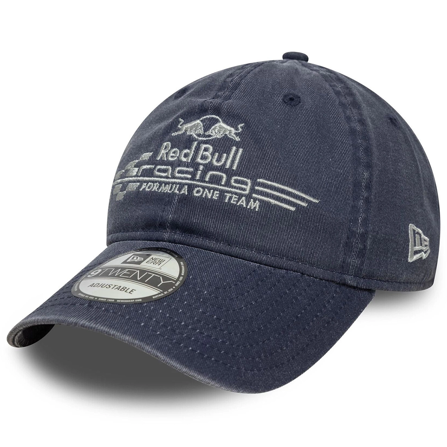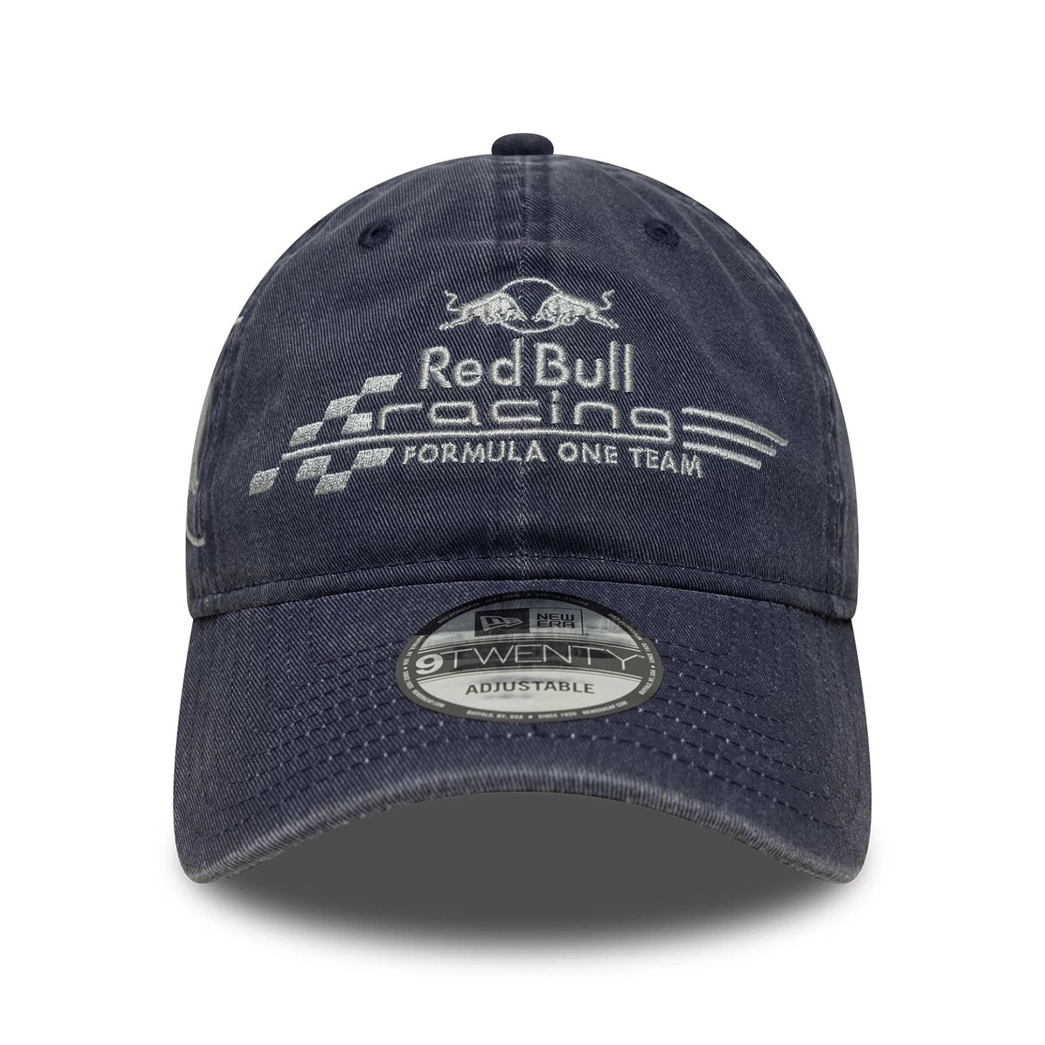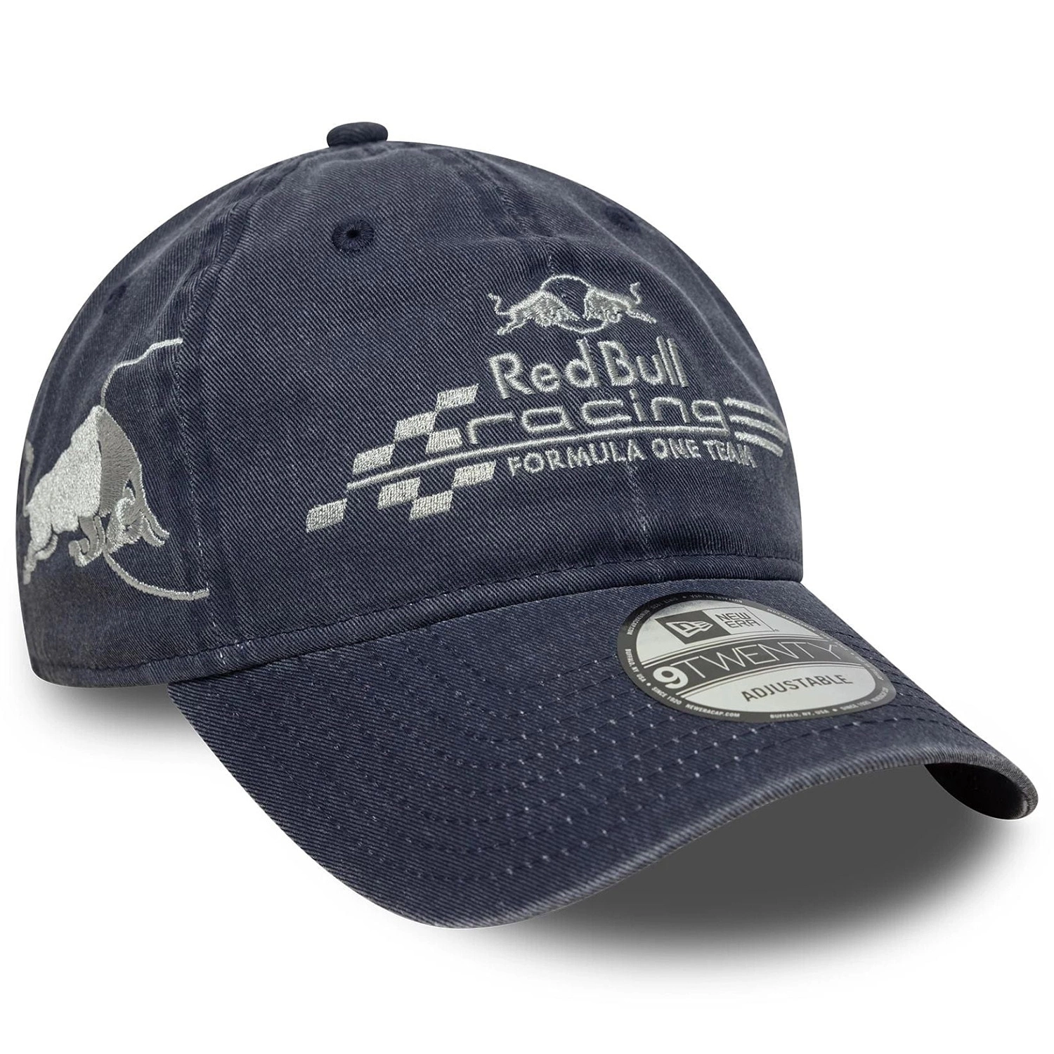 Official Oracle Red Bull Racing cap designed by New Era in a classic navy color with a washed effect. This hat features a curved brim, soft unstructured crown, and adjustable closure for comfortable wear and a stylish retro look. Perfect for fans of Formula 1 and the Red Bull Racing team.