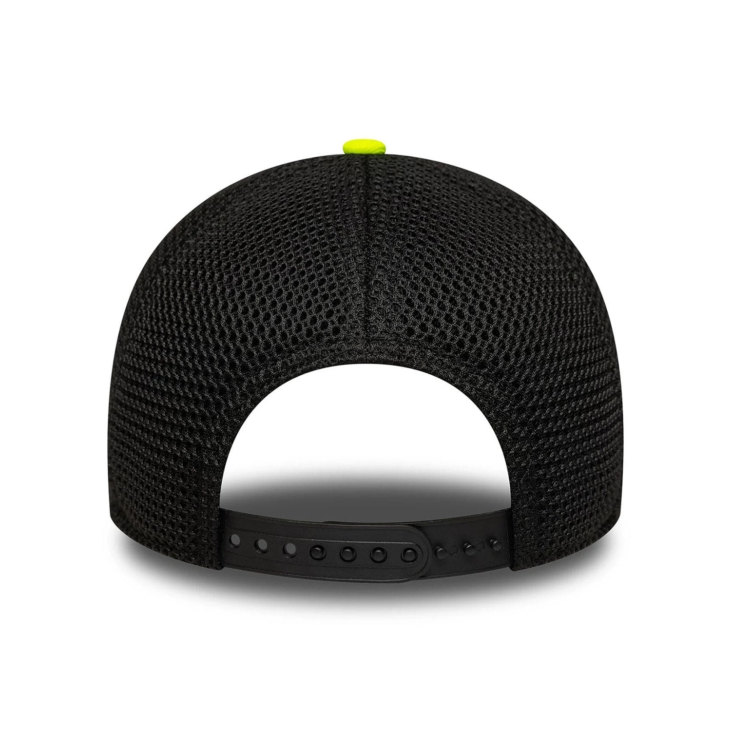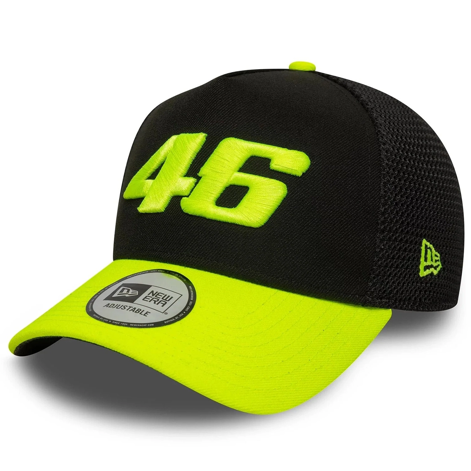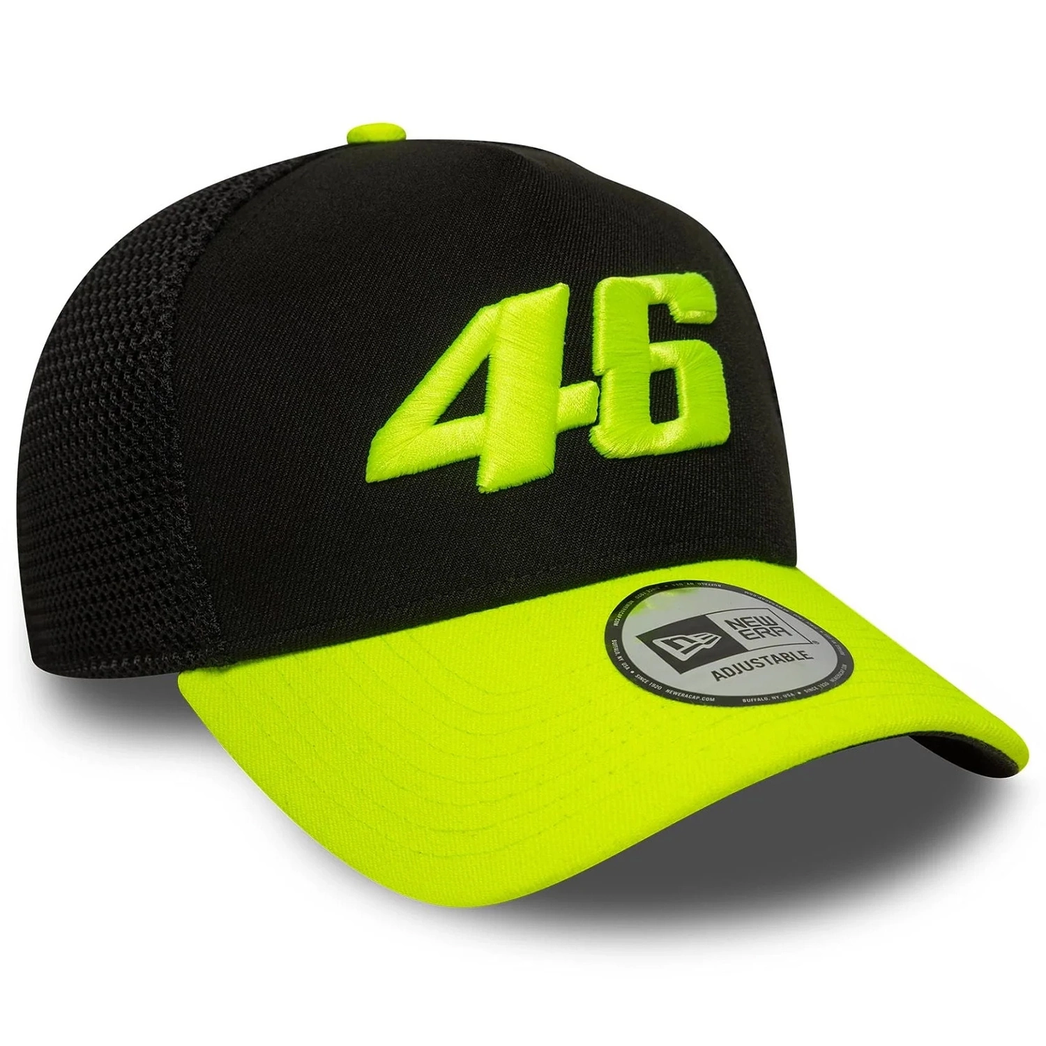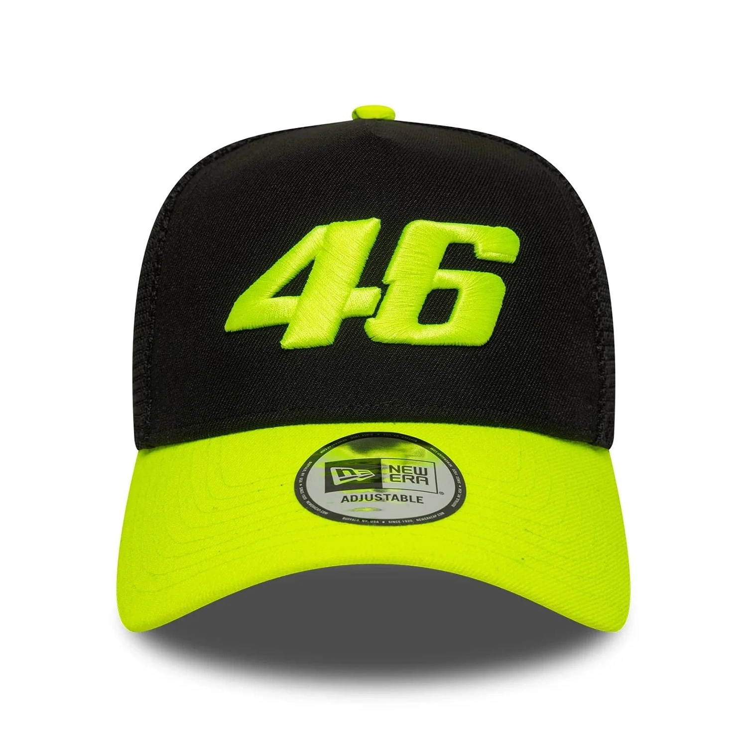 Official Valentino Rossi VR46 trucker cap, designed by New Era. This classic cap features breathable Maxweave mesh panels at the back and sides, a curved brim, and an adjustable closure for all-day comfort. A must-have for fans of Valentino Rossi and his legendary style both on and off the track.