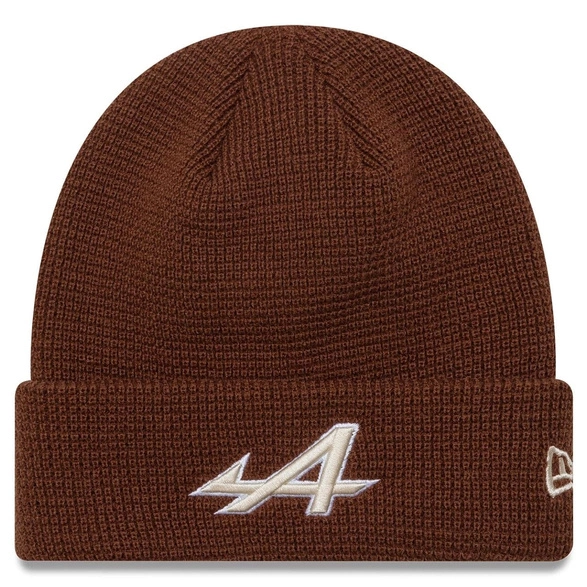 Official Alpine F1 Team winter beanie, designed by New Era in a rich brown color. Made from soft knitted fabric with a distinctive waffle texture that provides extra warmth. Perfect for colder days and a great choice for fans of Formula 1 and the French BWT Alpine F1 Team.