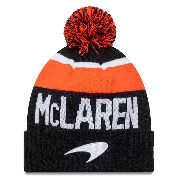 Official McLaren Formula 1 Team winter beanie designed by New Era in a classic black striped design. Made from soft, stretchable knit fabric, this beanie offers warmth and everyday comfort during colder days. A perfect pick for fans of Formula 1 and the McLaren team.