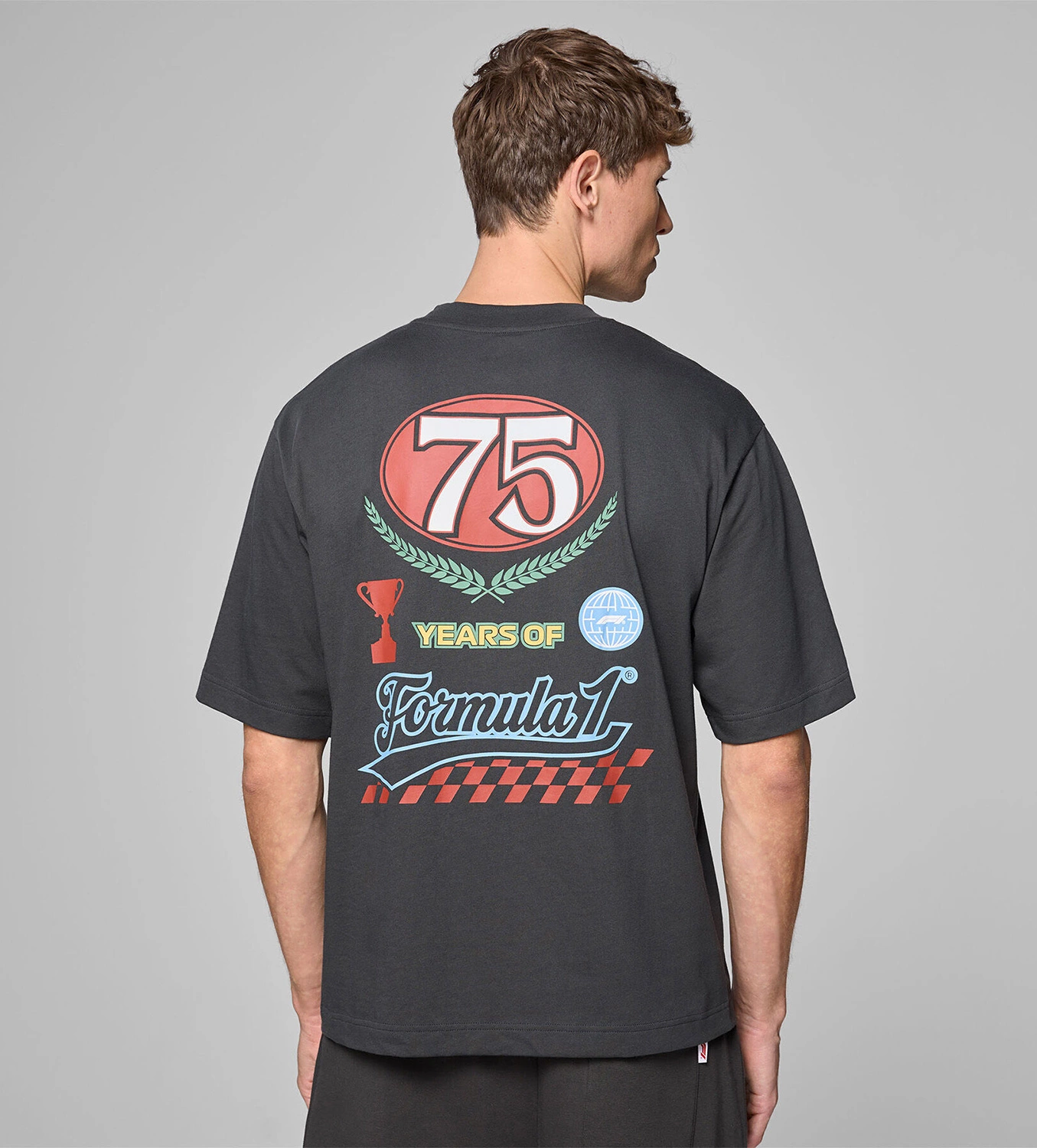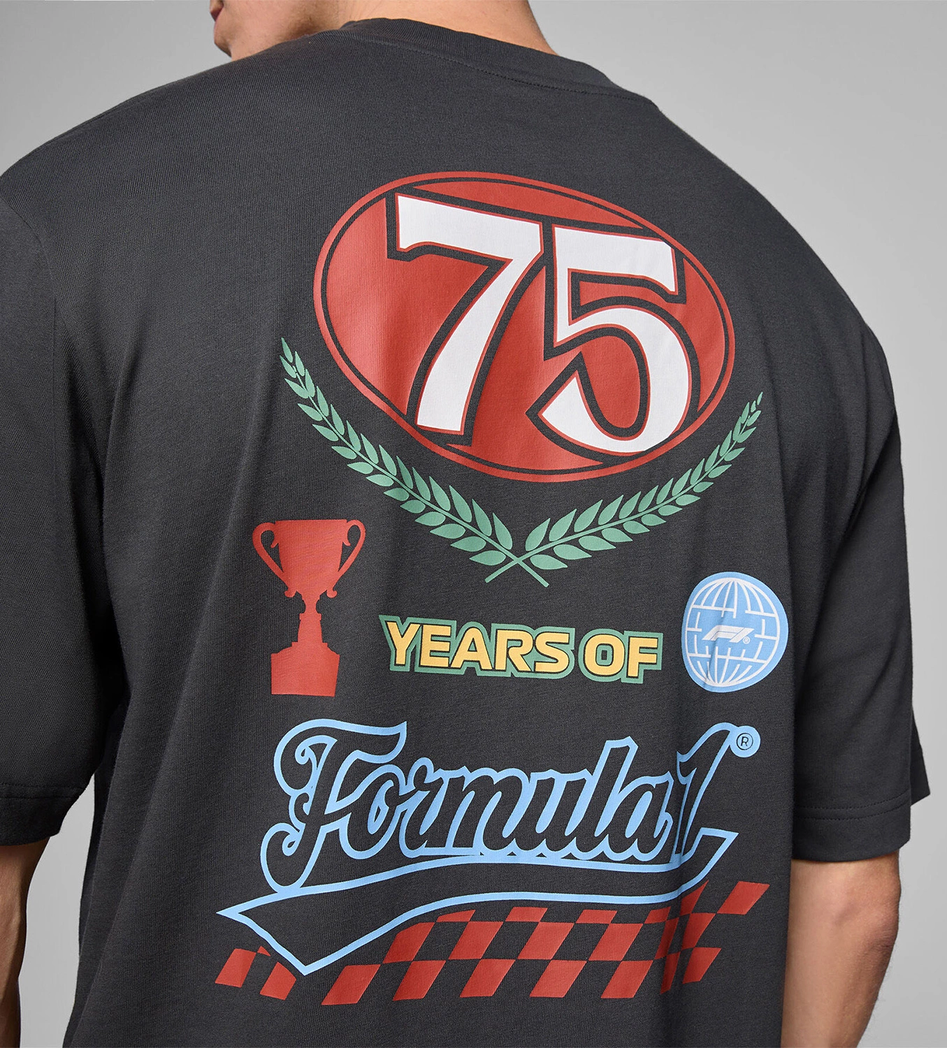 The F1 Legacy Graphic T-Shirt celebrates 75 years of Formula 1 history. Made from 100% organic cotton, it combines comfort and style with a relaxed fit and a unique retro-inspired graphic. Perfect for F1 fans who want everyday comfort while showcasing their motorsport passion.