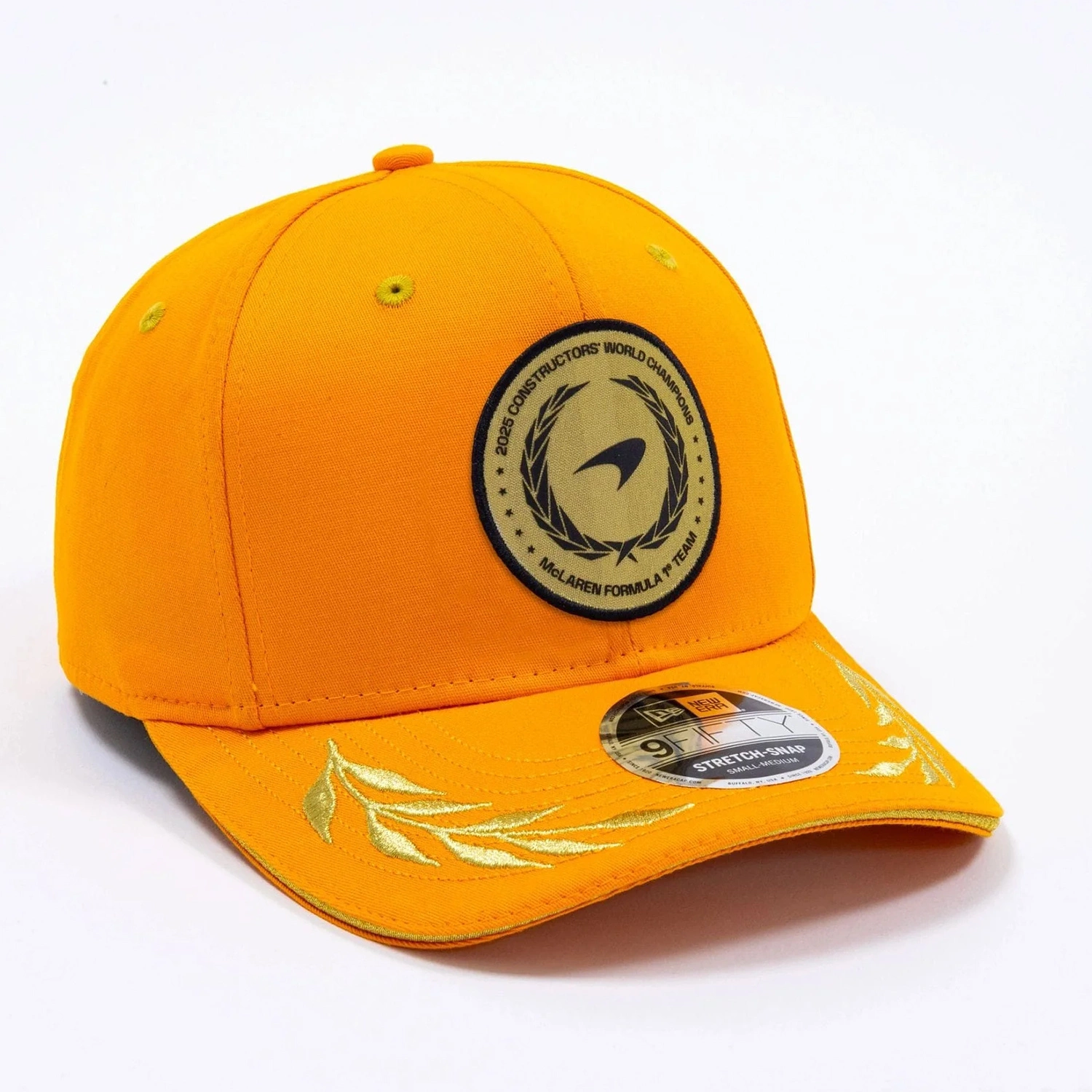 The official McLaren F1 New Era 9FIFTY Stretch Snap Cap celebrates the team’s 2025 Constructors’ World Championship, secured thanks to the outstanding performances of Lando Norris and Oscar Piastri. This special edition is a tribute to a remarkable season and the loyal fans supporting McLaren throughout the year.