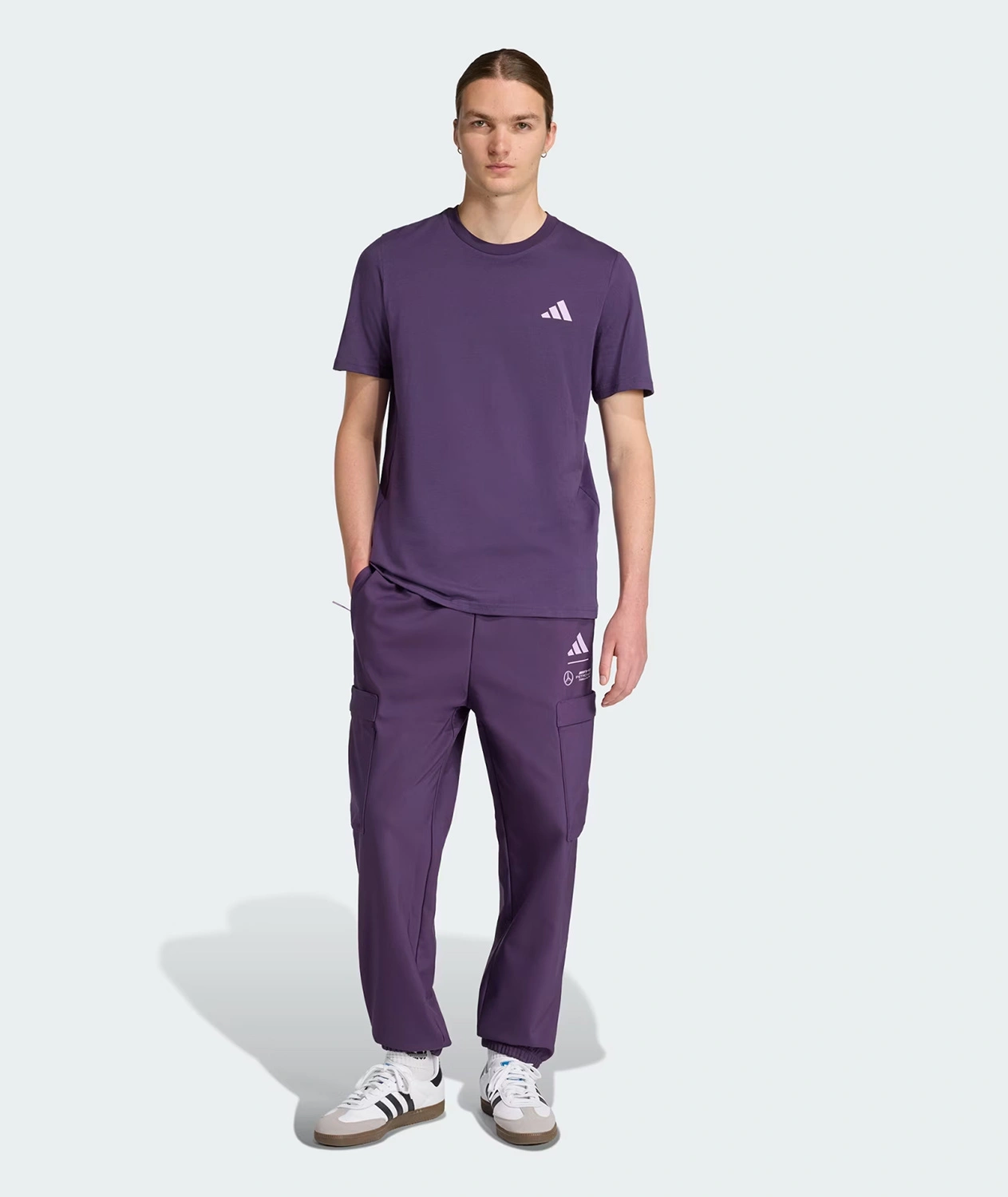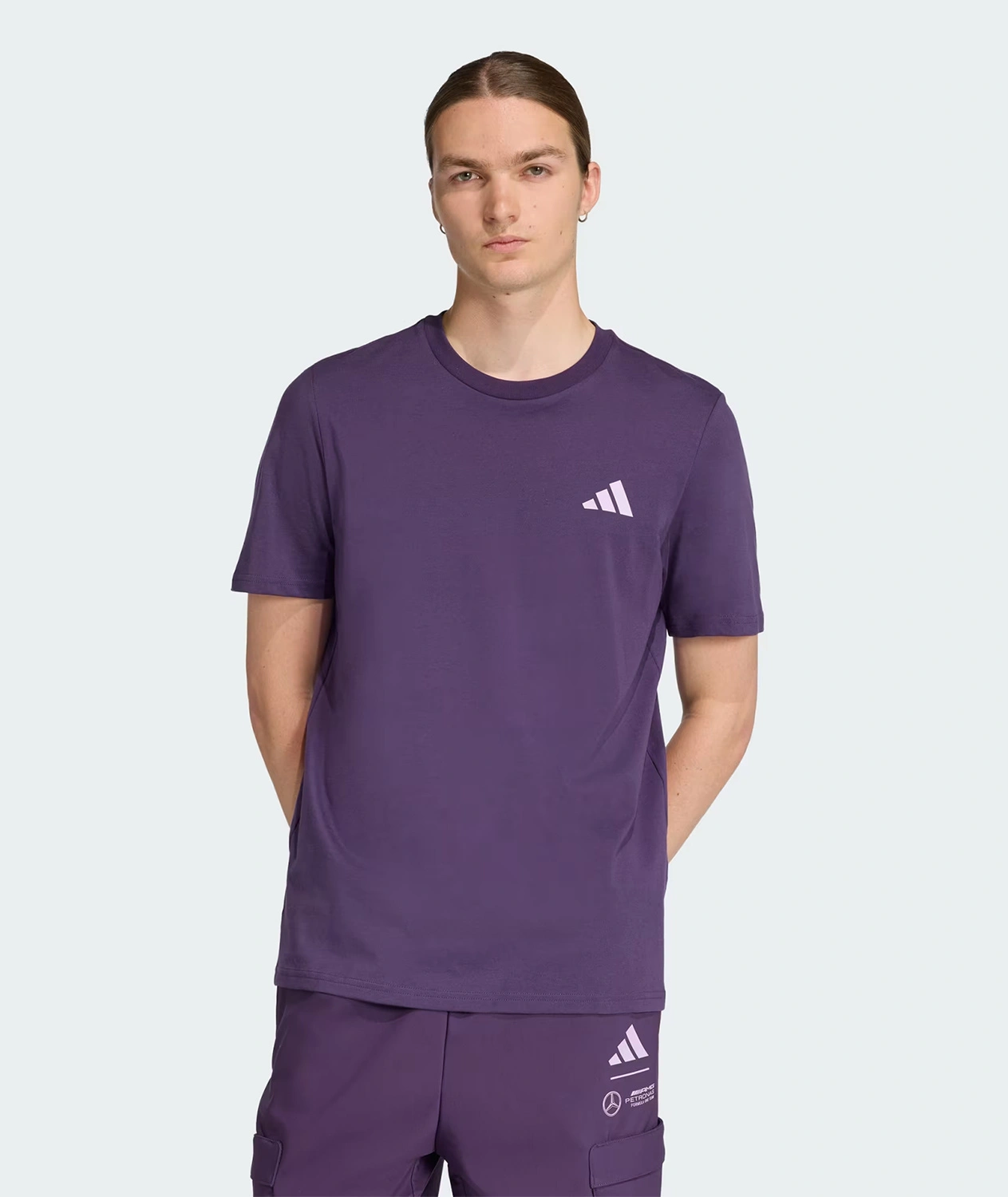 Mercedes AMG Petronas F1 adidas Men's Premium Woven Graphic T-Shirt - Purple