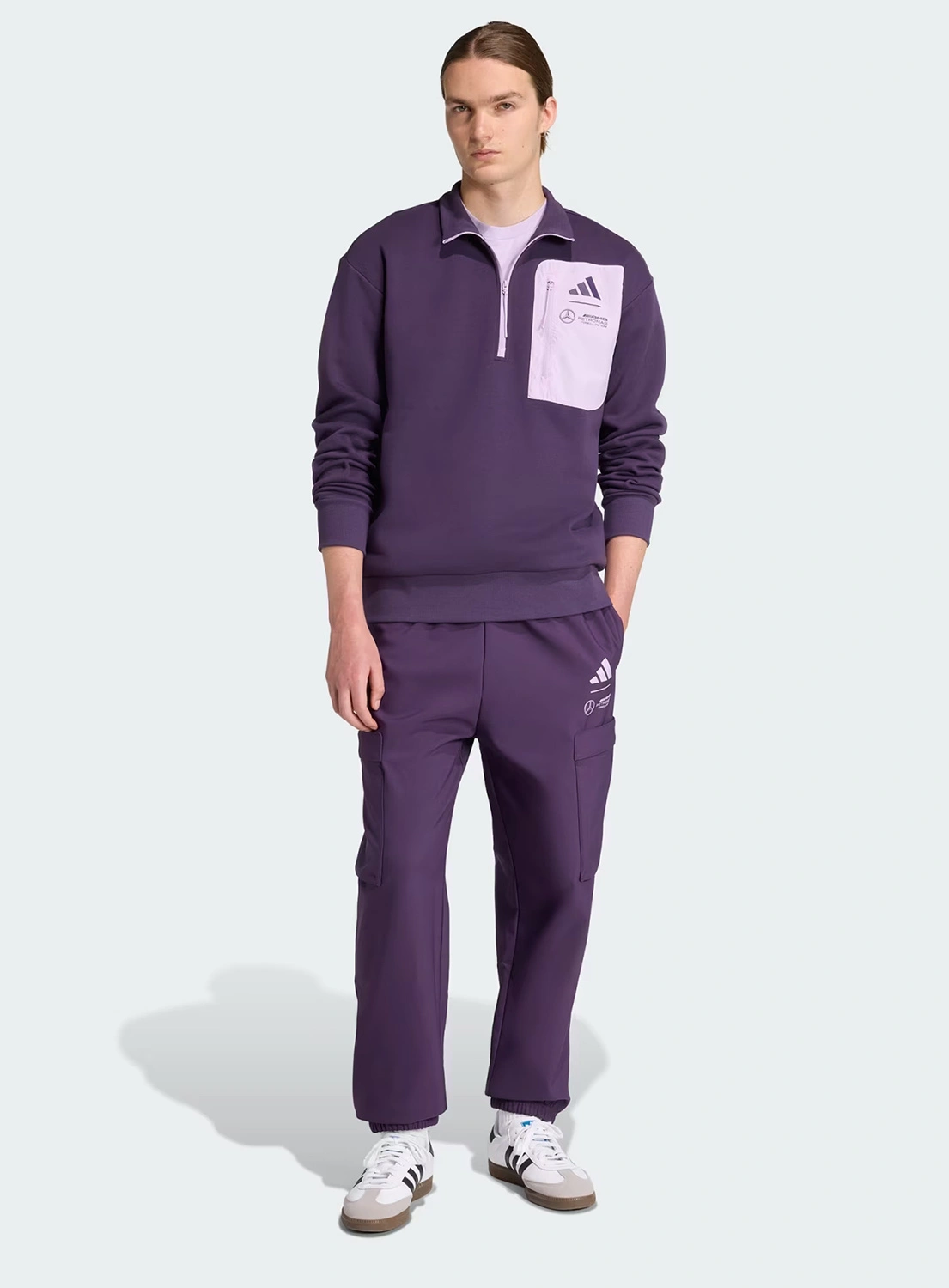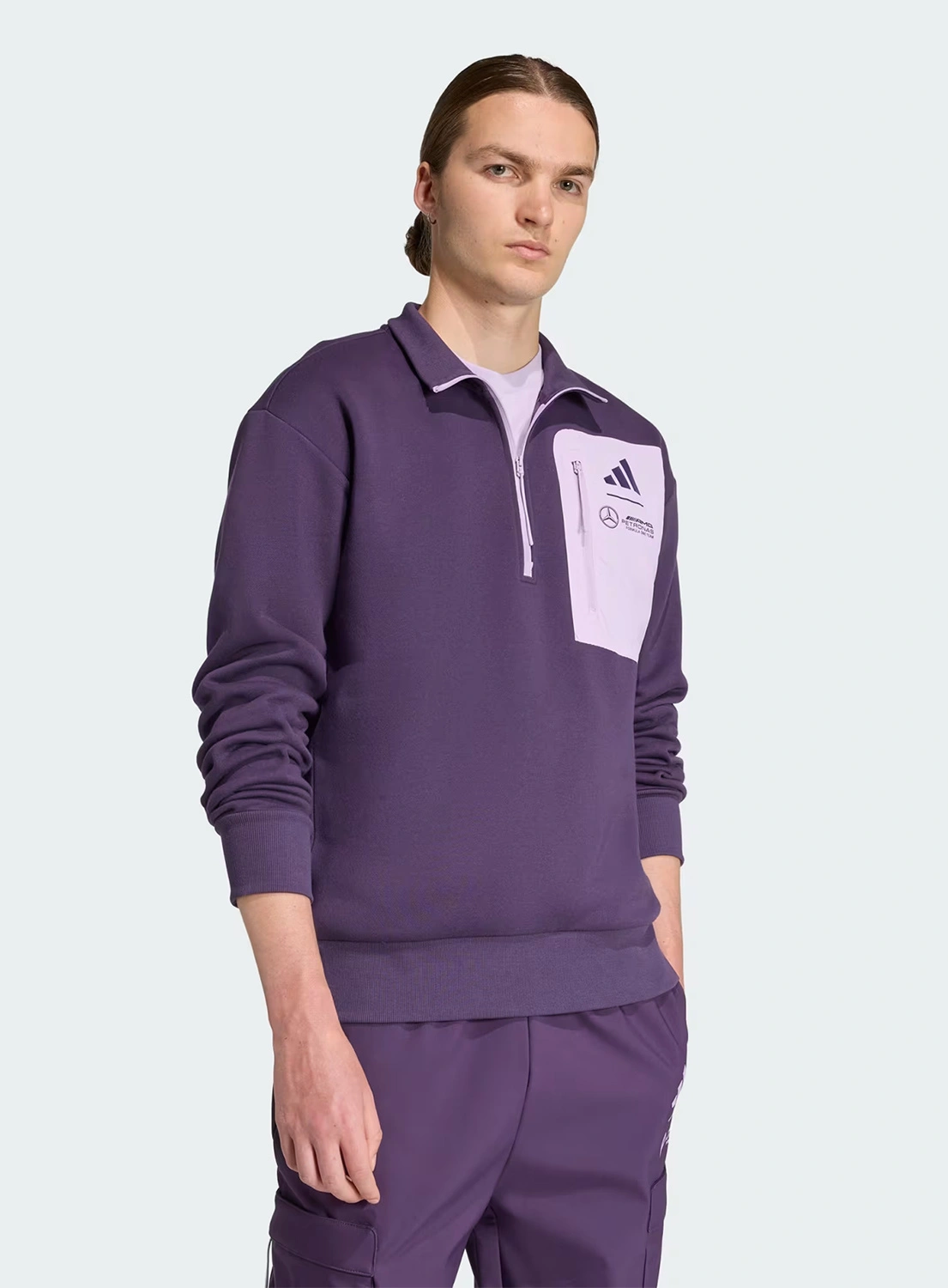 Mercedes AMG Petronas F1 adidas Men's Premium Woven Fleece Sweatshirt - Purple