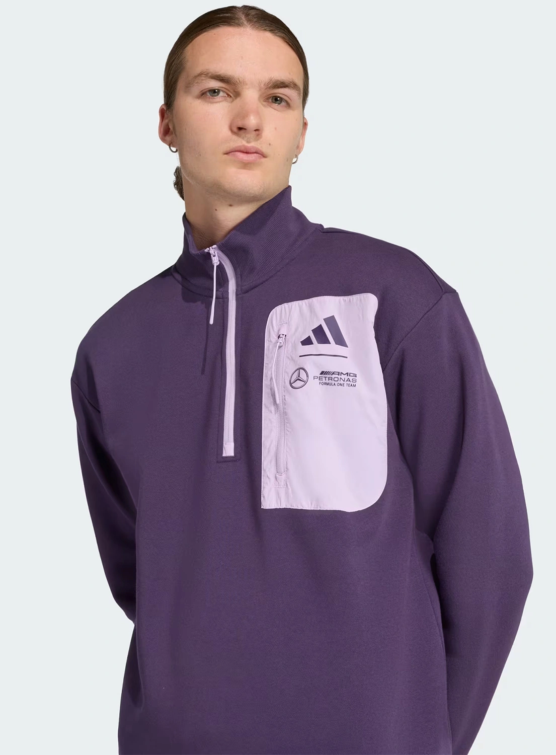 The Mercedes-AMG Petronas F1 Premium Woven Fleece is part of the adidas Motorsport collection, designed for everyday comfort and practical functionality. Made from a blend of cotton and recycled polyester, it provides warmth and a comfortable feel for daily wear. The half-length zip and stand-up collar offer added protection against cooler temperatures, while the zippered chest pocket adds a distinctive and practical detail. The Mercedes-AMG Petronas Formula One Team branding and iconic three-stripe logo complete the authentic motorsport look.