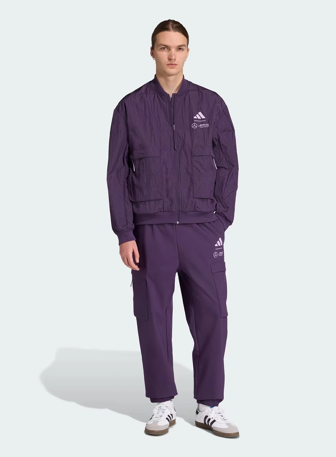 Mercedes AMG Petronas F1 adidas 2025 Men's Premium Woven Bomber - Purple